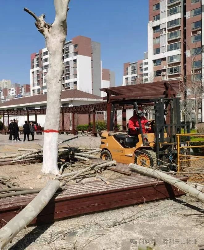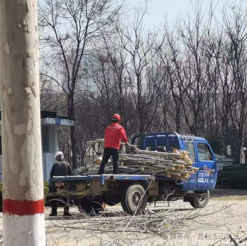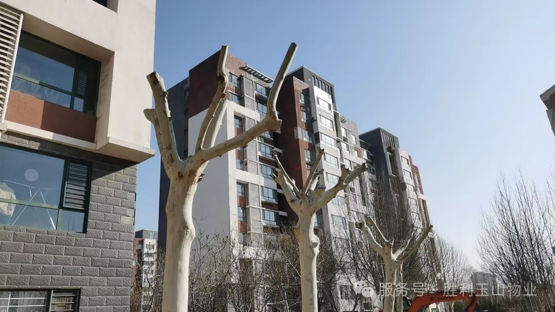 近半个月来,胜利玉山物业兴河事业部组织专业人员,对祥河小区内的 268 棵树木开展修剪打头工作,旨在消除安全隐患,提升小区绿化品质。