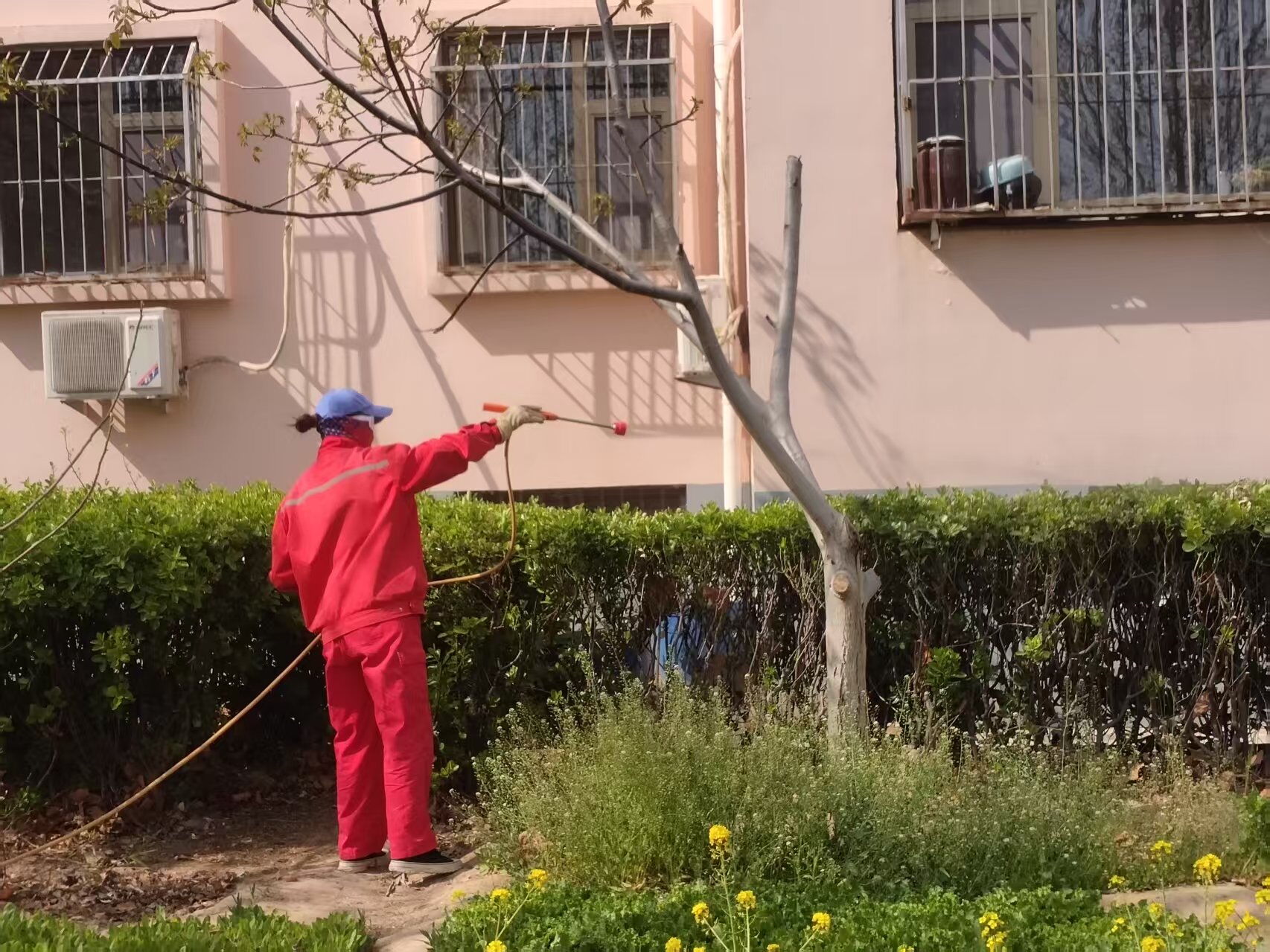 随着气温逐渐升高,小区内虫害开始出现特别是绿化带内冬青较多,为了有效防治虫害保证绿植的健康生长,滨州分公司建翔项目早计划、早部署、早行动对小区绿化带冬青打药预防虫害。