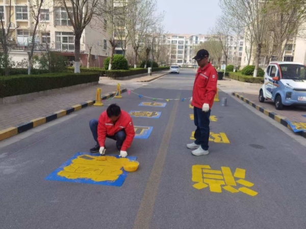 锦华事业部为加强消防安全管理,规范居民停车行为,对小区内消防通道进行了醒目标识喷涂作业,确保消防通道畅通无阻,保障居民生命财产安全。
