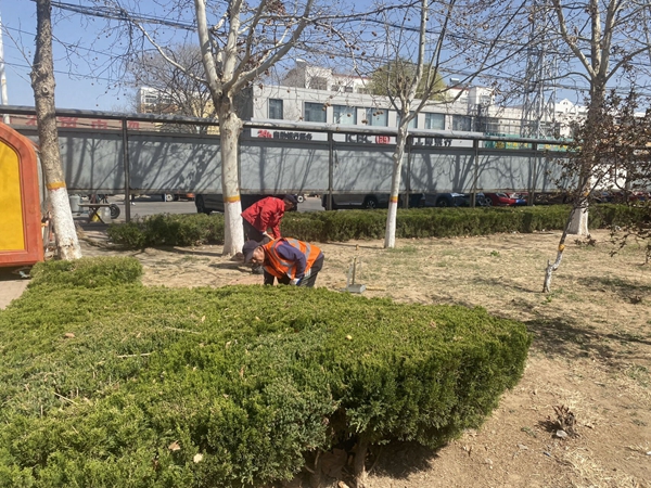 开春以来,胜利玉山物业桐凤事业部结合季节特点和中心“精细管理塑品牌优质服务争一流”竞赛活动要求,扎实开展绿化养护工作,全面提升小区绿化管养水平,积极争创“绿化养护管理样板小区”。