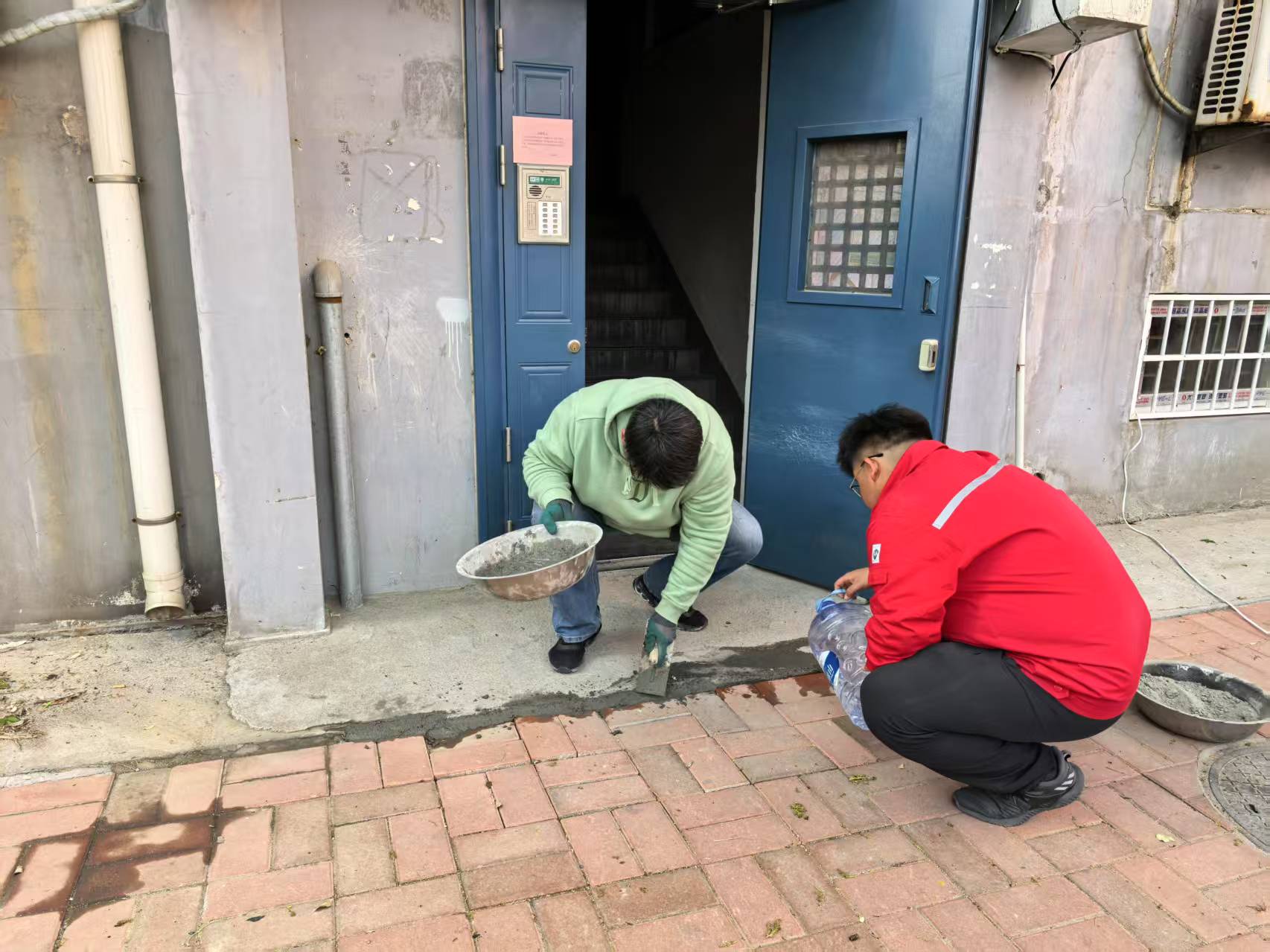 近日,接到居民反馈,雅苑小区5号楼前散水坡出现开裂。考虑到雨季将至,为避免地下室渗水,物业人员迅速行动,调配好水泥,拿上工具赶赴现场。搅拌水泥时,严格把控配比,确保材料质量。接着,将水泥仔细填入裂缝,用抹子压实抹平,不放过任何一处缝隙。扎实的维修功底赢得了居民的连连称赞。经过一上午的努力,成功完成修补,彻底为居民解决了后顾之忧。物业人员告诉居民会持续关注5号楼散水坡状况,也欢迎居民随时反馈问题。