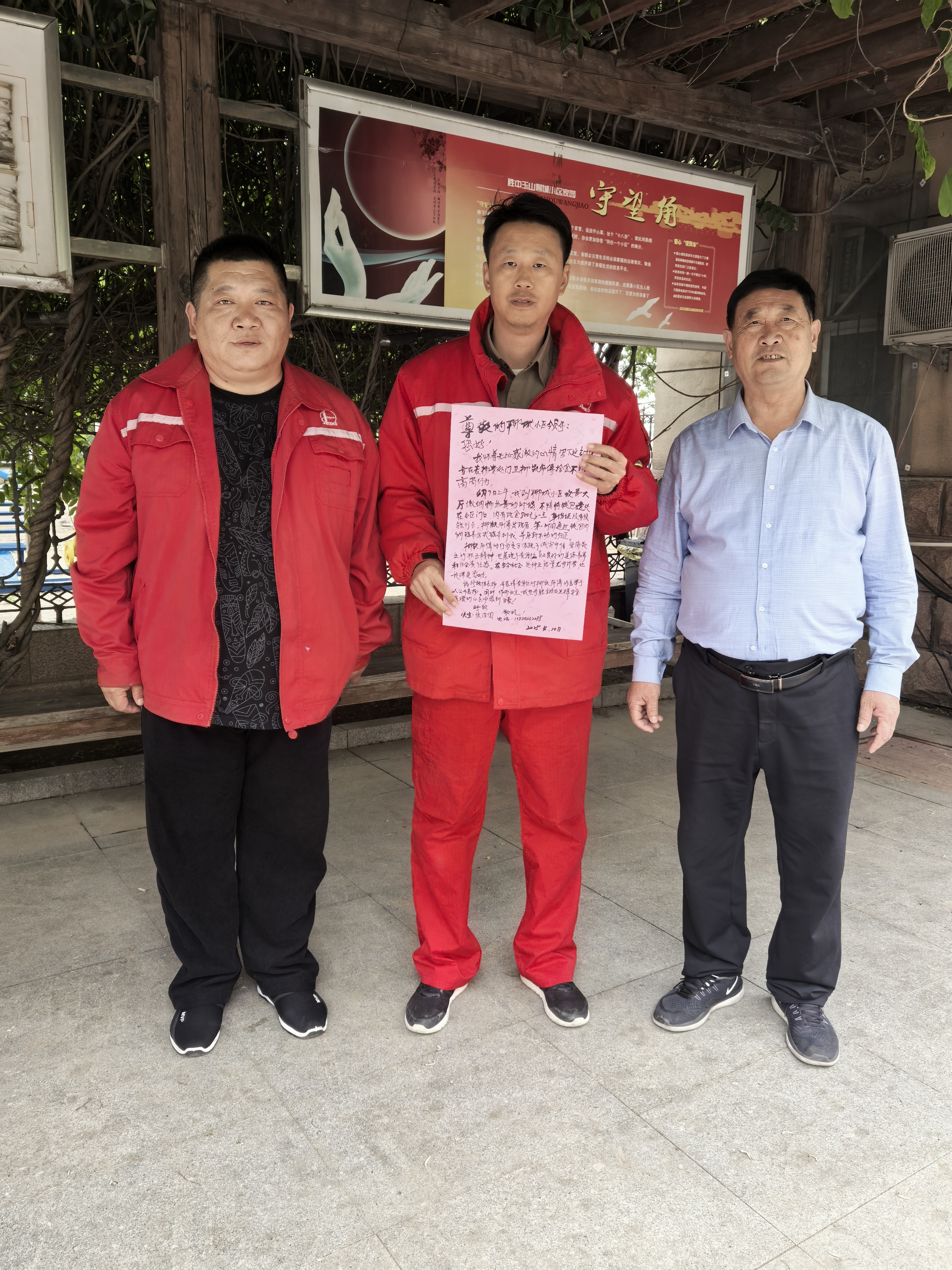 近日,玉山事业部泽苑项目聊城小区门卫柳凯在日常执勤期间捡到一个黑色钱包,内有现金800余元、身份证、银行卡等重要物品。他立即上报项目经理,并通过钱包内的联系方式成功找到失主张师傅。张师傅深受感动,亲手写下感谢信,称赞柳凯“拾金不昧,尽职尽责”的职业精神。