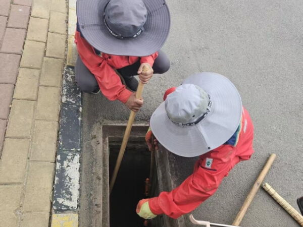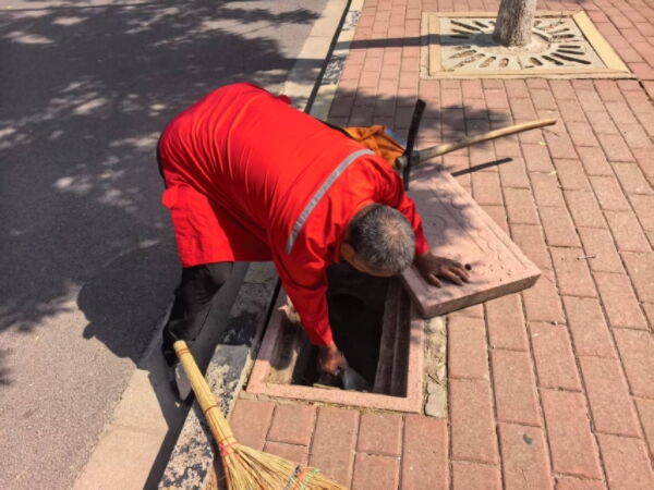 连日来,室外气温持续攀升,热浪袭人。物业职工们却无惧高温“烤”验,身穿工作服,手持铁锨、镐头、簸箕、扫把等工具,对小区内每一处雨排口、收水口进行仔细排查。他们俯身弯腰,徒手清理雨排口周边堆积的枯枝烂叶、塑料袋等杂物,钻进狭窄的排污管道,疏通堵塞处,全然不顾污水溅湿衣衫、污泥沾满双手。
