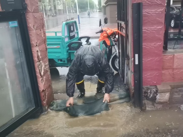 风雨未至,行动先行。幸福事业部各项目组第一时间向小区居民发布紧急天气预警,巡逻人员全员出动,紧盯易积水区域,提前排查隐患。暴雨倾盆之际,工作人员迅速投入战斗,清扫路面堆积落叶、清理积水、紧急垒砌防汛沙袋,争分夺秒保障居民出行安全与道路通畅。