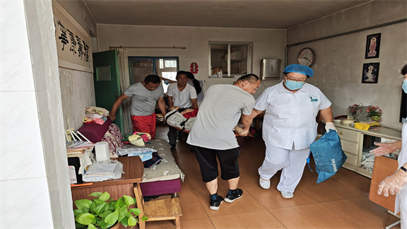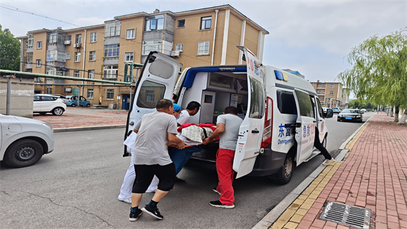 目睹现场后,付艳辉立即热心的上前协助。由于张阿姨长期瘫痪导致身体沉重,想要平稳搬动她难度太大,极易造成二次伤害,付艳辉随即通过手机呼叫项目部支援。短短2分钟内,在附近工作的南区项目经理霍守波、综合维修项目经理郭运杰、王立华迅速赶到,在医护人员的专业指导下,合力将张阿姨平稳抬上救护车,为救治争取了宝贵时间。