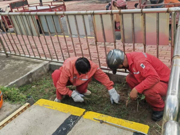 一大早刚上班,物业职工便携带清扫工具奔赴小区各处。面对道路上深浅不一的积水,他们齐心协力,用大扫帚将积水引流至排水口,重点对单元楼出入口、主干道等区域进行重点清扫,避免积水给居民出行带来不便;针对雨后肆意生长的杂草,职工们耐心地弯腰拔除,不放过砖缝、绿化带等每一处角落;同时,对因风雨散落地面的落叶、杂物,职工们手持垃圾袋逐一清扫捡拾清理,确保小区环境干净整洁。