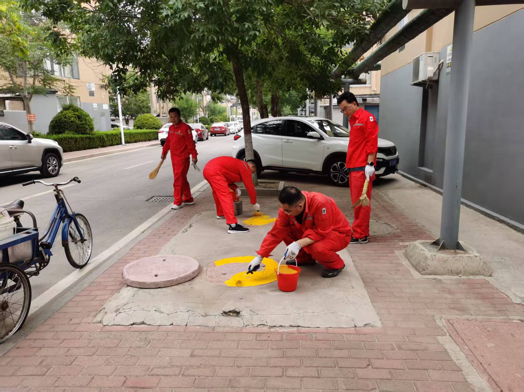 另外,自6月23日起,辛兴事业部还组织党员对小区内的下水道盖板和化粪池盖板涂抹上黄颜色油漆并喷上红色的“危险”二字,提醒业主注意。