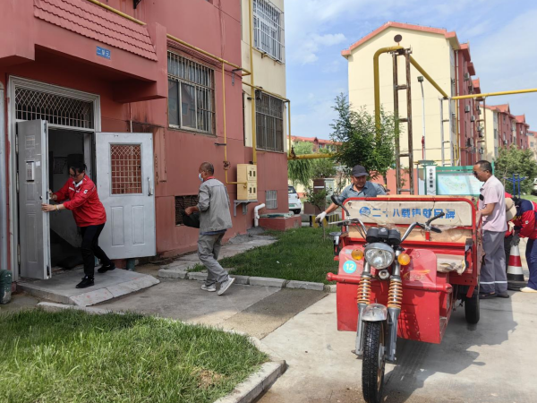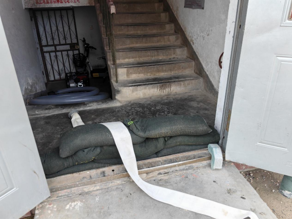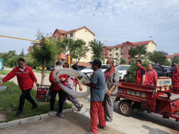 防汛演练在文明居委会王主任的指令下开始:演练模拟暴雨导致文明二小区楼道积水、楼栋底层进水等险情。接到预警后,物业防汛领导小组迅速启动应急预案,组织抢险队搬运沙袋封堵楼道楼宇门入口,操作抽水泵紧急排水;文明居委会工作人员同步行动,通过微信、小喇叭喊话等方式协助通知居民,引导人员疏散及物资转移。三方分工明确、配合默契,高效完成应急处置任务。