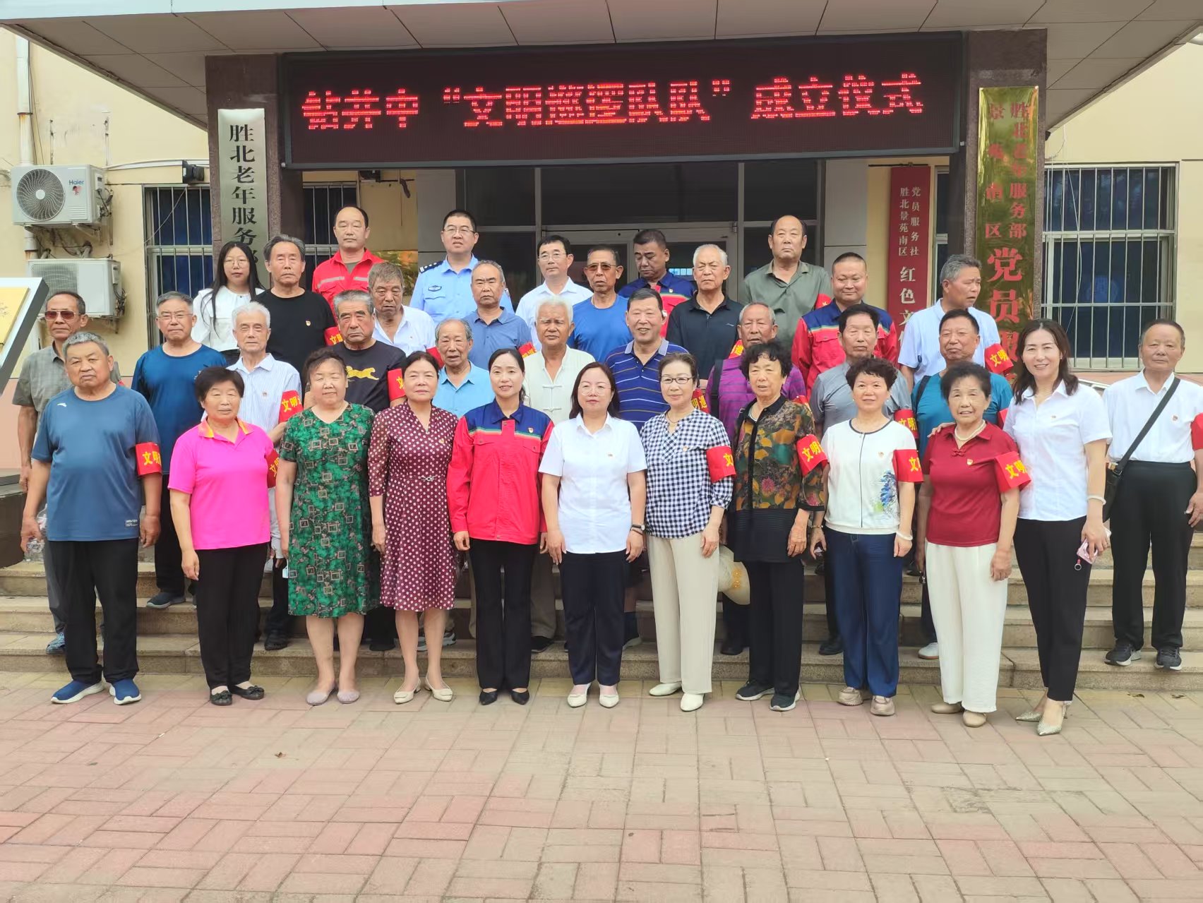 为庆祝中国共产党成立104周年,7月1日上午,胜利玉山物业景苑事业部联合钻井中社区开展主题党日活动,同步举行“光荣在党50年”纪念章颁发仪式及文明志愿巡逻队成立仪式。各相关负责人及辖区居民共计40余人参加。