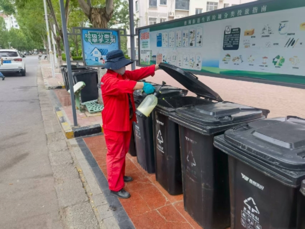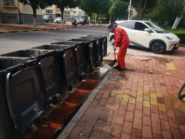 事业部要求保洁人员每天准时对小区内垃圾点进行全方位清理,不仅及时清运生活垃圾,确保垃圾桶不满溢,还要对垃圾点地面进行彻底清扫、拖擦,清除散落垃圾和污渍。同时,保洁人员坚持每日对垃圾桶内外进行擦拭、消毒,从源头减少异味产生。工作人员严格按照配比调配消杀药剂,重点对垃圾桶底部、垃圾存放角落等易滋生蚊虫的部位进行喷洒,形成常态化消杀防护网。