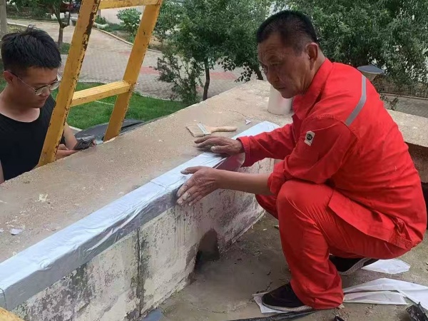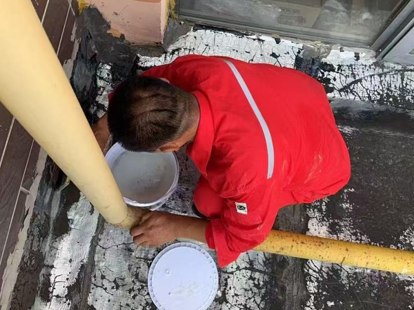 孤东佳苑项目经理王明义与杨文明闻讯即动,第一时间赶赴95号楼现场勘查。经细致评估,确认渗水点后,两人迅速展开维修工作。他们高效清理雨塔积水与杂物,随即细致涂覆专业防水胶膜,快速完成渗漏修复,消除了居民的困扰。从报修到解决,流程顺畅高效,展现了团队过硬的专业素养与以业主为先的服务精神。
