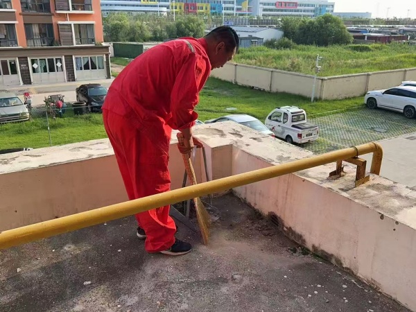 胜利玉山物业幸福事业部孤东佳苑小区服务大厅接到95号楼居民关于楼道雨塔渗水的报修电话后,立即前往查看维修,以实际行动诠释“幸福守护者”的担当。