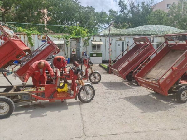 电动三轮车作为物业日常巡检、清运垃圾、物资运输的主力工具,其安全性能直接关系到工作人员及业主的出行安全,为保障电动三轮车设备安全运行,锦华物业事业部按时开展专项保养工作,通过对电解液、大灯、刹车等关键部件的细致排查与维护,切实消除安全隐患。