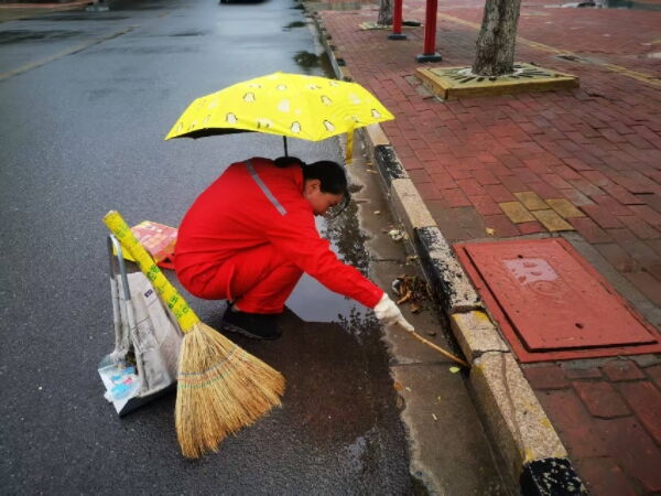 针对降雨后出现积水的低洼路段、单元门口等区域,工作人员迅速使用大扫帚等工具并肩作战,弯腰发力将积水一点点推向雨水井,确保路面无明显积水,为居民出行扫清障碍。在清理积水的同时,巡视人员将所有雨排口进行细致排查,他们徒手清理堵塞在排水口的落叶、淤泥等杂物确保雨水排放系统畅通无阻,从源头上减少再次积水的可能。