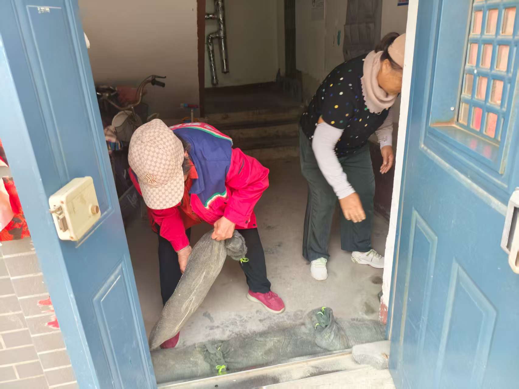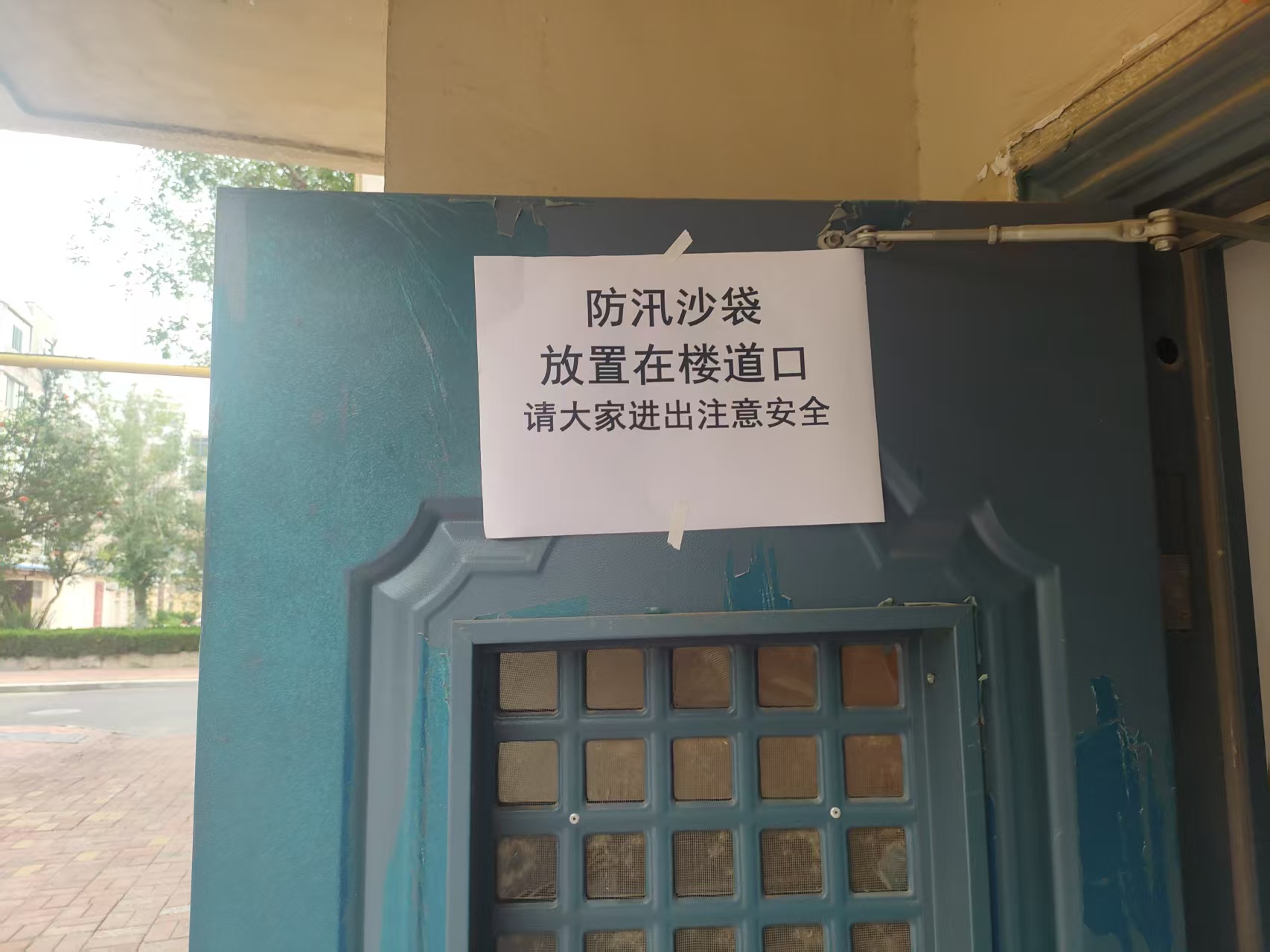 一袋袋沙袋被稳稳地放在单元门门口,形成整齐的防护墙,既能阻挡雨水倒灌进楼道,又不影响居民正常通行。防护墙摆放到位的同时,温馨提示也同步到位,单元门旁的公告栏贴上了醒目的通知,提醒大家“雨天路滑,进出请留意脚下”;居民微信群里,物业工作人员配上沙袋摆放的现场照片,细致叮嘱“防汛沙袋放置在楼道口,请大家进出注意安全”。