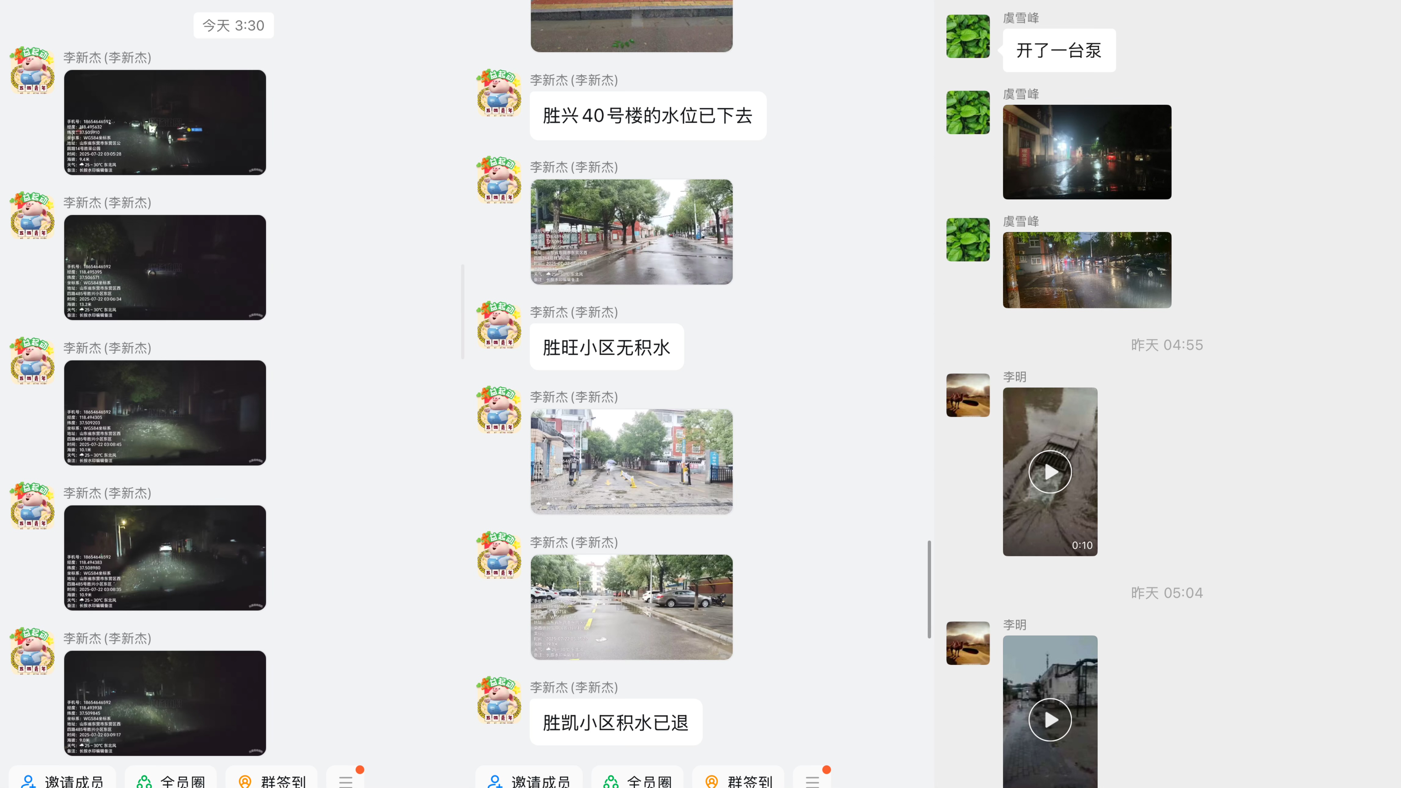 经过近几个小时的紧急作业,小区主干道及单元门口的积水已基本排清,路面恢复畅通。此刻工作人员的衣服能拧出水来,却没人抱怨一句,看着早起的居民推着婴儿车平稳走过,大家相视一笑,眼里的红血丝都透着欣慰与安心。