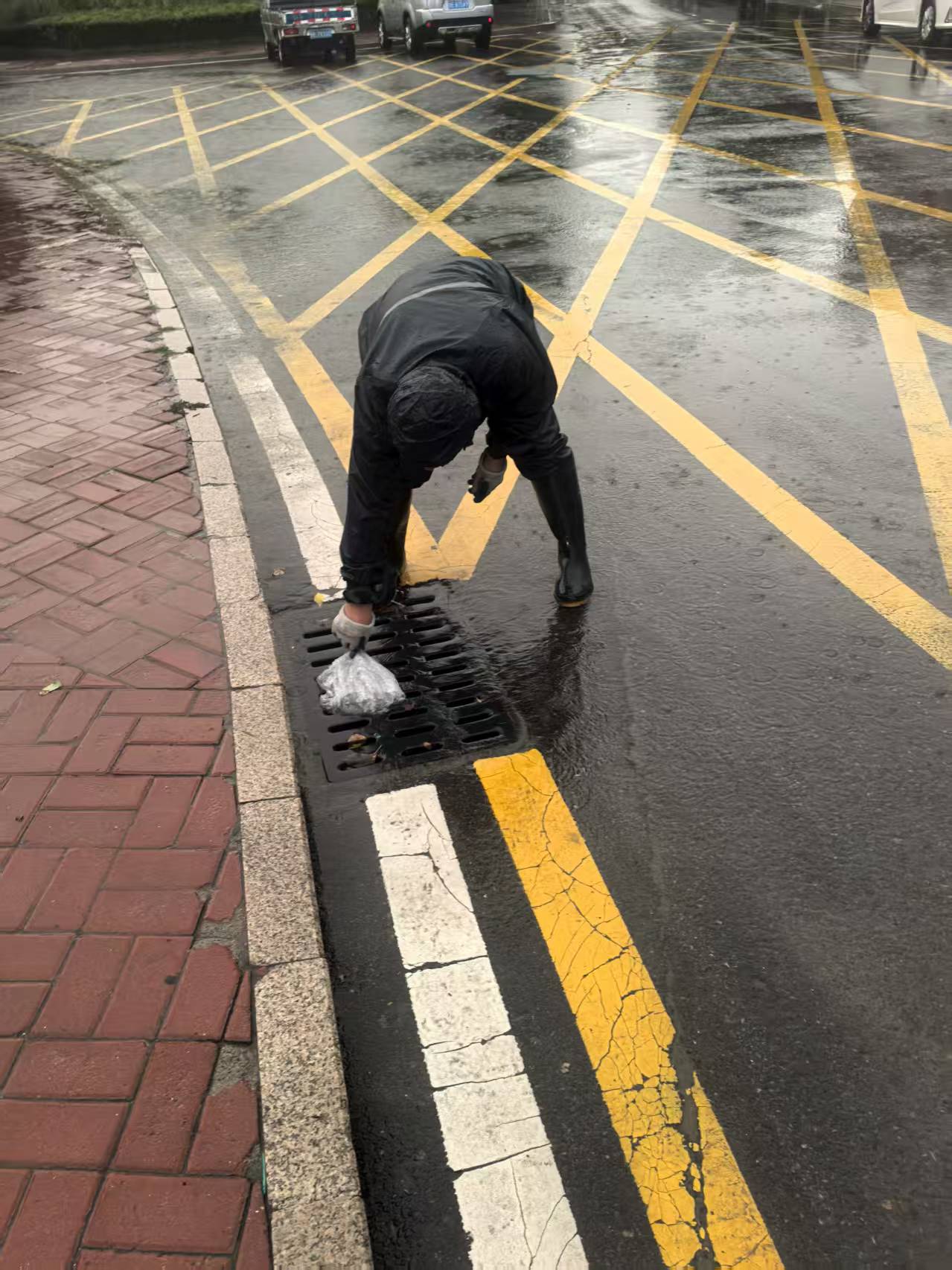 汛期来临前,清苑项目对辖区内的雨水井、排水沟、地下室等关键设施开展"拉网式"检查。工作人员顶着高温,逐个清理雨水井内的落叶、淤泥,确保排水通道畅通;对地下室的抽水泵进行多次调试,更换老化零件,保证设备在强降雨时能"开得动、抽得出"。同时,物业还重点检查了小区围墙、外立面、高空悬挂物等,及时加固松动的空调外机、广告牌,避免风雨天气出现坠落隐患。