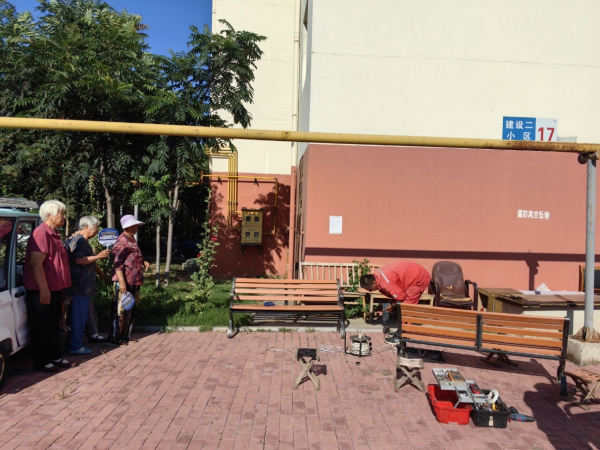 幸福事业部建设二小区17号楼东头,今日多了道暖心的风景——两张崭新的休闲椅,稳稳当当地立在老人们常聚的角落。阳光落下来,映着老人们的笑脸,连风里都带着股亲切劲儿。