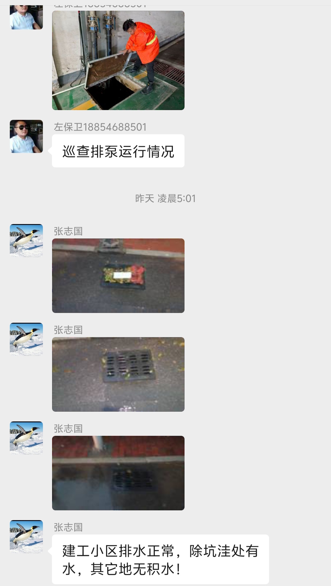 7月22日凌晨1点20分,胜利油田玉山物业管理公司辛兴事业部值班领导—物业管理主管师程革坐在办公桌前,眼睛紧紧盯着手机屏幕,阅读着一条条信息:建工小区无积水、工农一村无积水,东升小区地势最低处积水最深处已达100mm,目前排水泵运行正常------