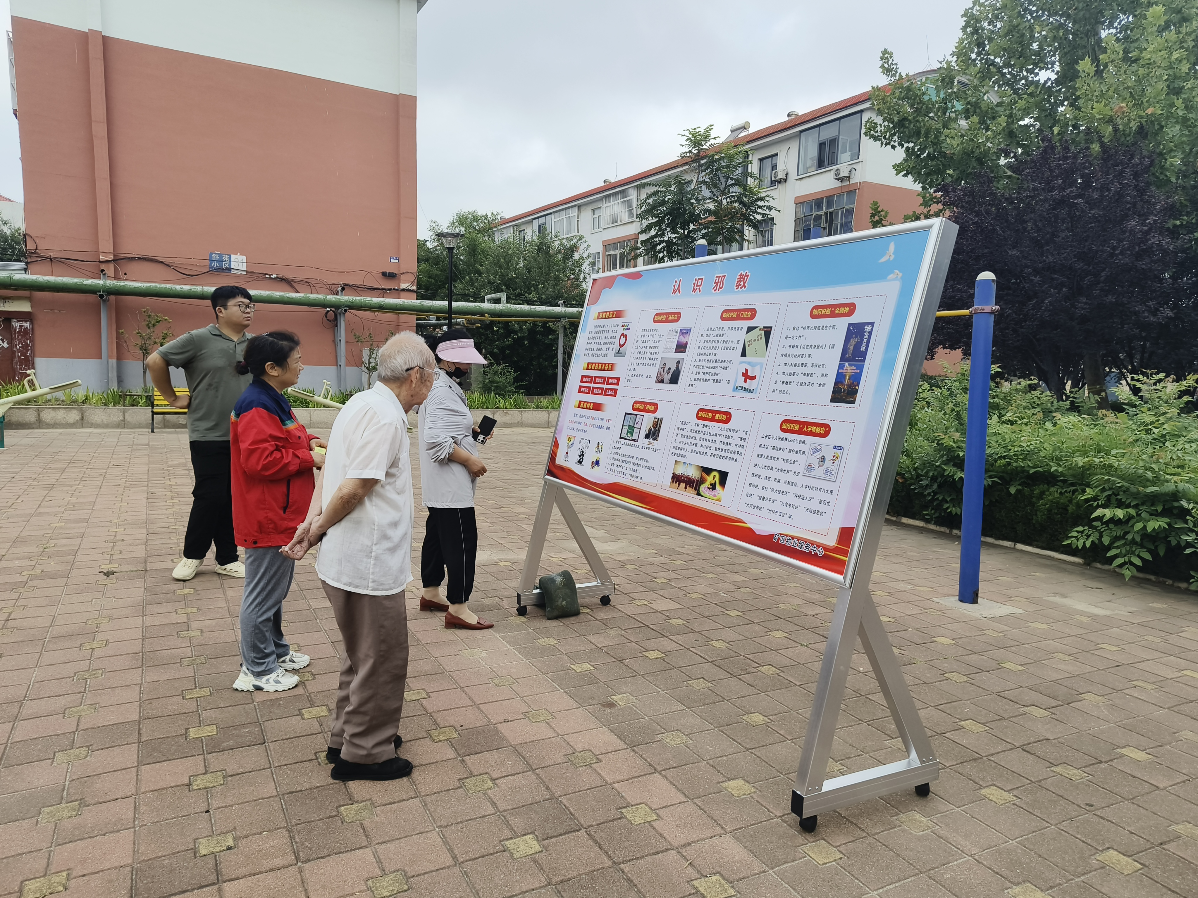 为守护小区平安祥和,深化反邪教宣传教育,让反邪教理念真正走进群众日常生活,筑牢全面参与的坚固防线,7月31日,胜利玉山物业携手辛店街道舒苑社区精心部署开展以“崇尚科学,反对邪教”为主题的宣传活动,旨在提升居民对邪教的认知,共同守护社区安全。