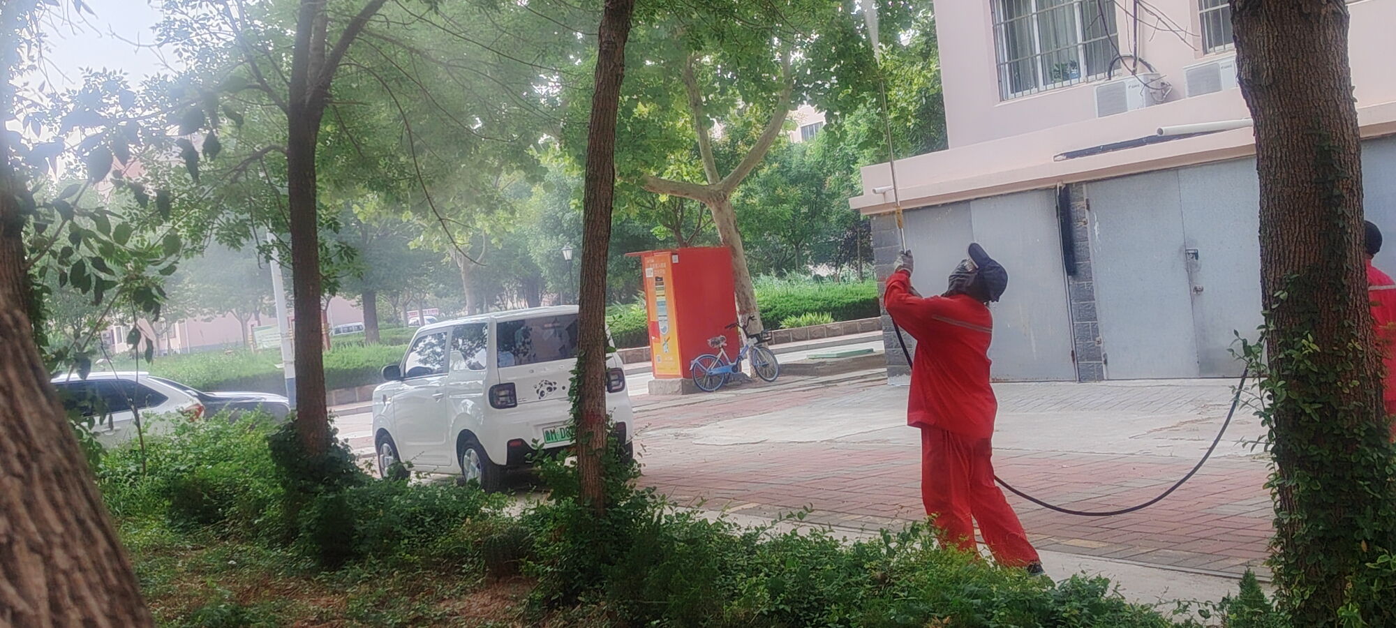 炎炎夏日正是病虫害防治时,滨州分公司建翔项目在前期巡查小区了解实际情况后,认真对症下药对小区绿植进行全面病虫害防治。