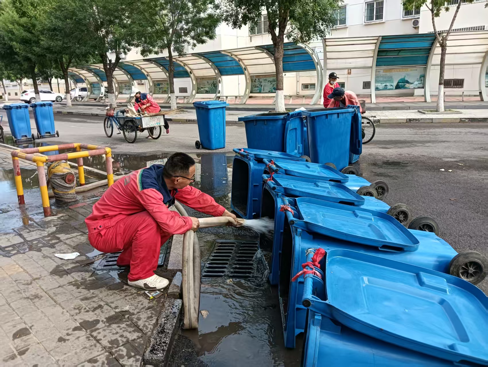 为筑牢服务基础,景苑事业部第一时间开展环境卫生专项整治。物业员工对辖区内垃圾桶进行彻底清洁,通过翻洗、倾倒残留垃圾、细致擦拭内壁等方式,确保垃圾桶内外洁净。同时加大室外环境及楼道垃圾点的整体消杀力度,从源头防止蚊虫滋生。针对“基孔肯雅热”病毒防护,景苑事业部进一步强化绿地及公共区域消杀工作,同步向居民发出温馨提示:避免在户外晾晒衣物,外出时做好防蚊措施,降低病毒感染风险。