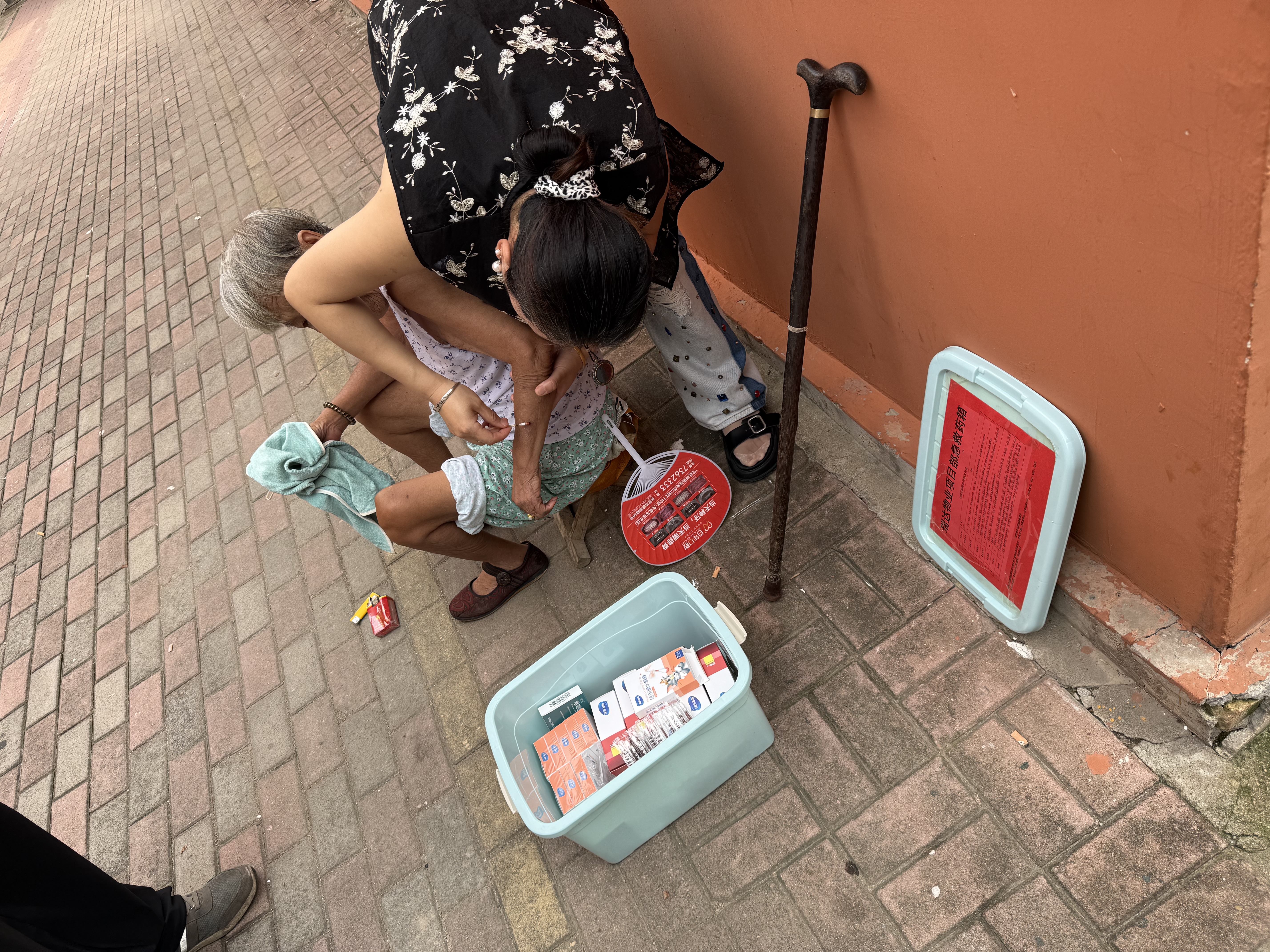 伤口处理妥当后,老人的儿子终于接通了电话,电话那头满是焦灼与愧疚:“我马上往回赶,但路上需要点时间,麻烦你们多照看我母亲!”挂掉电话,物业三人没有离开,而是围坐在老人身旁陪伴。彼时蝉鸣聒噪,闷热的天气里,汗水顺着他们的脸颊滑落,时间仿佛都放慢了脚步。老人不时望向远方,目光里满是对熟悉身影的期盼,难掩焦灼。刘强青默默拿出随身携带的扇子,为老人扇风降温;李梦瑶则轻声与老人唠起家常,从小区里的新鲜事聊到生活琐事,努力转移老人的注意力,缓解她的不安。