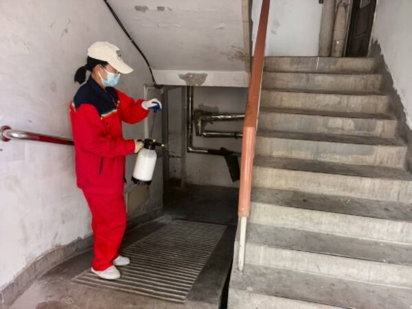 公厕和垃圾点是蚊蝇滋生的重点区域,物业职工们逐一排查卫生死角,对便池、垃圾桶内壁、下水道口等易滋生蚊虫的部位反复喷洒药剂,确保消杀无盲区。楼道内,他们弯腰对扶手、墙角、窗台等细节处仔细消杀,不放过任何一处可能的蚊虫藏匿点。