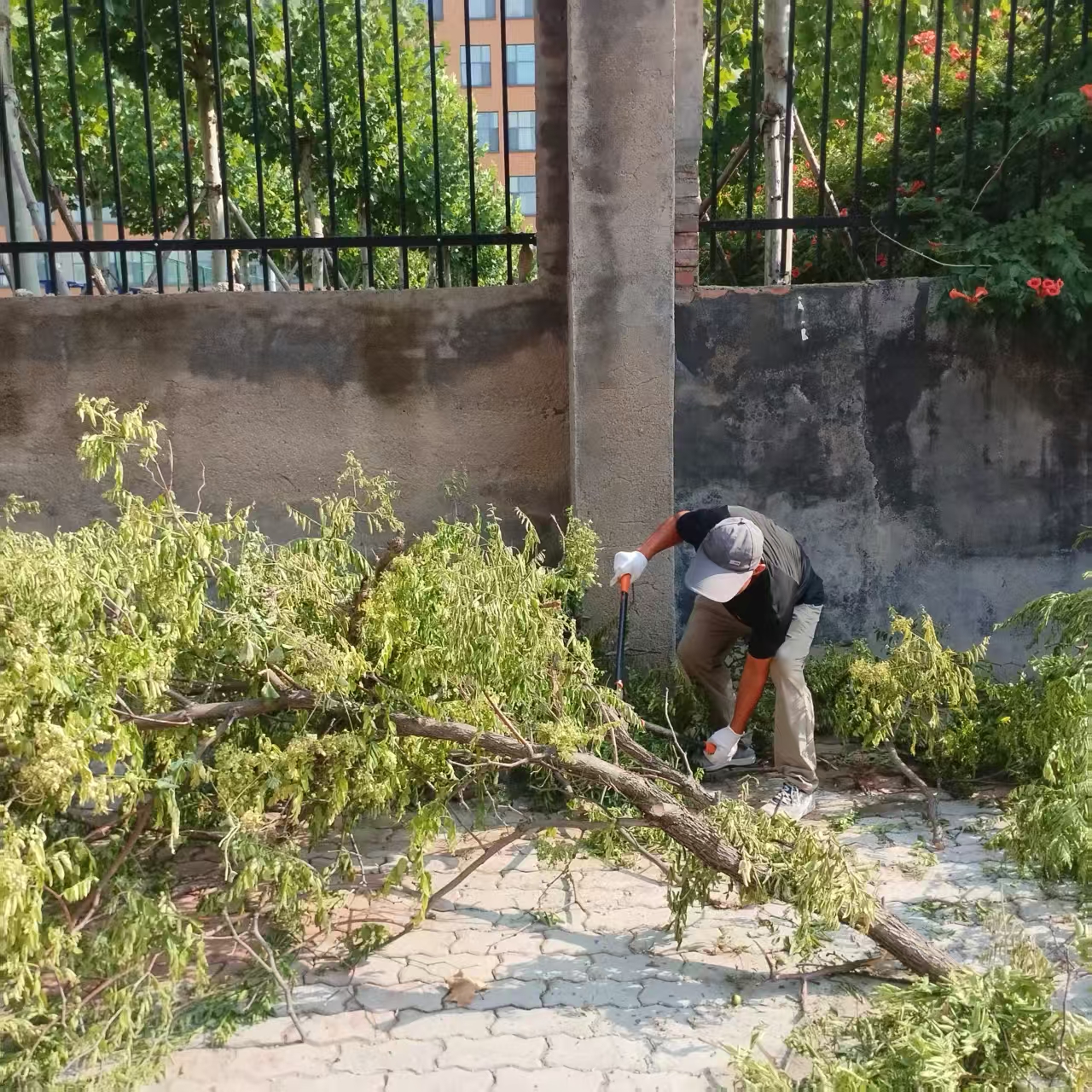 修剪当天,工作人员手持专业修剪工具,将那些遮挡居民窗户、影响道路通行以及靠近电线的树枝一一修剪掉。大家不怕脏、不怕累,汗水湿透了衣衫,但没有一个人喊累。每修剪完一处,我们都会及时清理现场,避免给居民生活造成不便。经过几天的辛苦付出,小区的树木变得整齐有序,安全隐患得以消除。居民们看到修剪后的变化,对物业的工作赞不绝口。