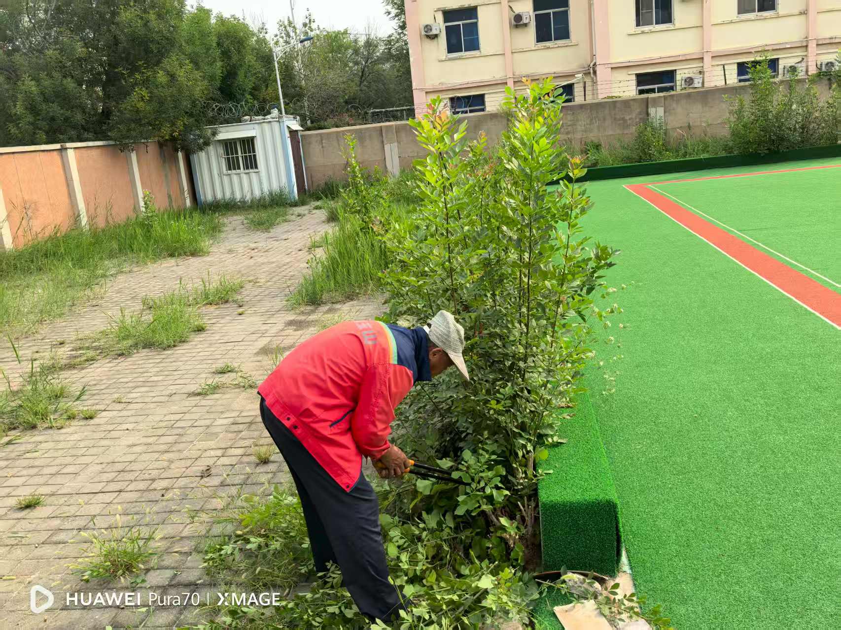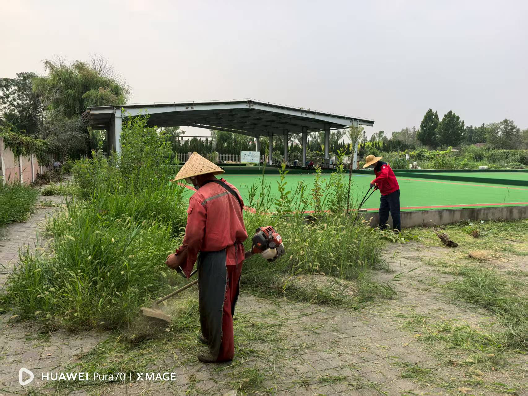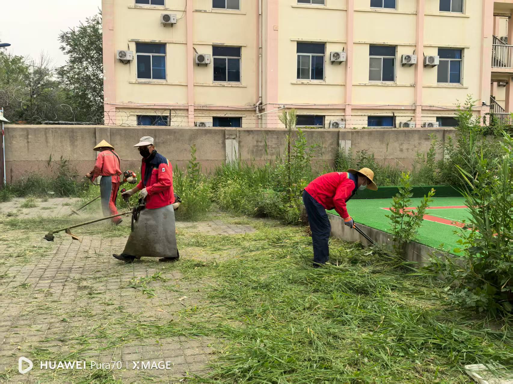 抵达门球场后,工作人员迅速投入工作。他们分工协作,有的操控割草机清理大面积杂草,有的手持修剪工具修整场地边缘杂枝,动作娴熟、效率颇高。经过数小时的集中整治,门球场周边的杂草被彻底清除,场地环境焕然一新,原本杂乱的区域变得整洁有序,重新恢复了适宜运动的良好状态。