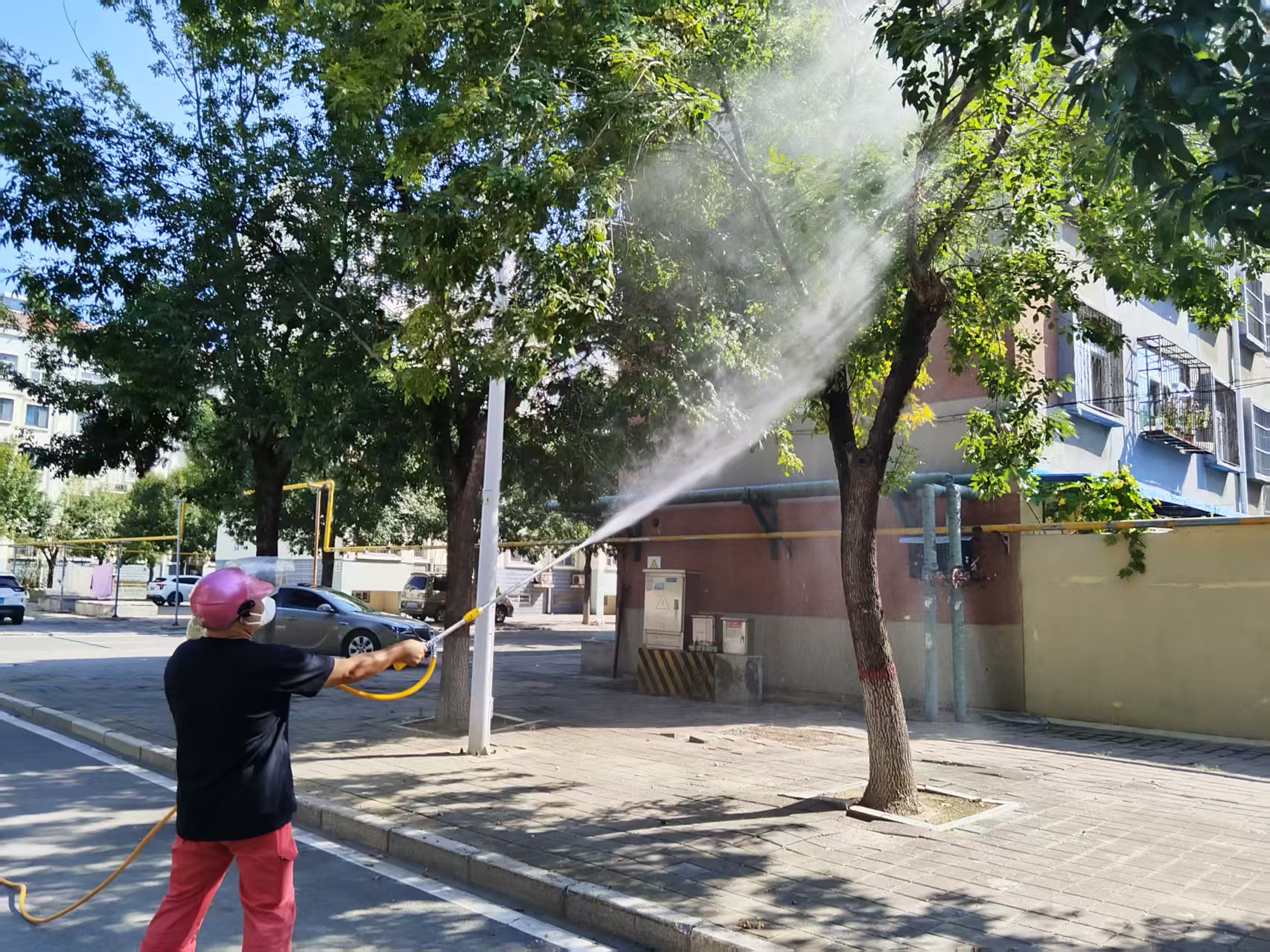 为确保树木防虫作业安全、有序、高效推进,胜利玉山物业胜兴事业部提前做好全方位准备工作。工作人员身着专业装备,背负打药设备,对小区内树木的枝叶、枝干展开地毯式细致喷洒。