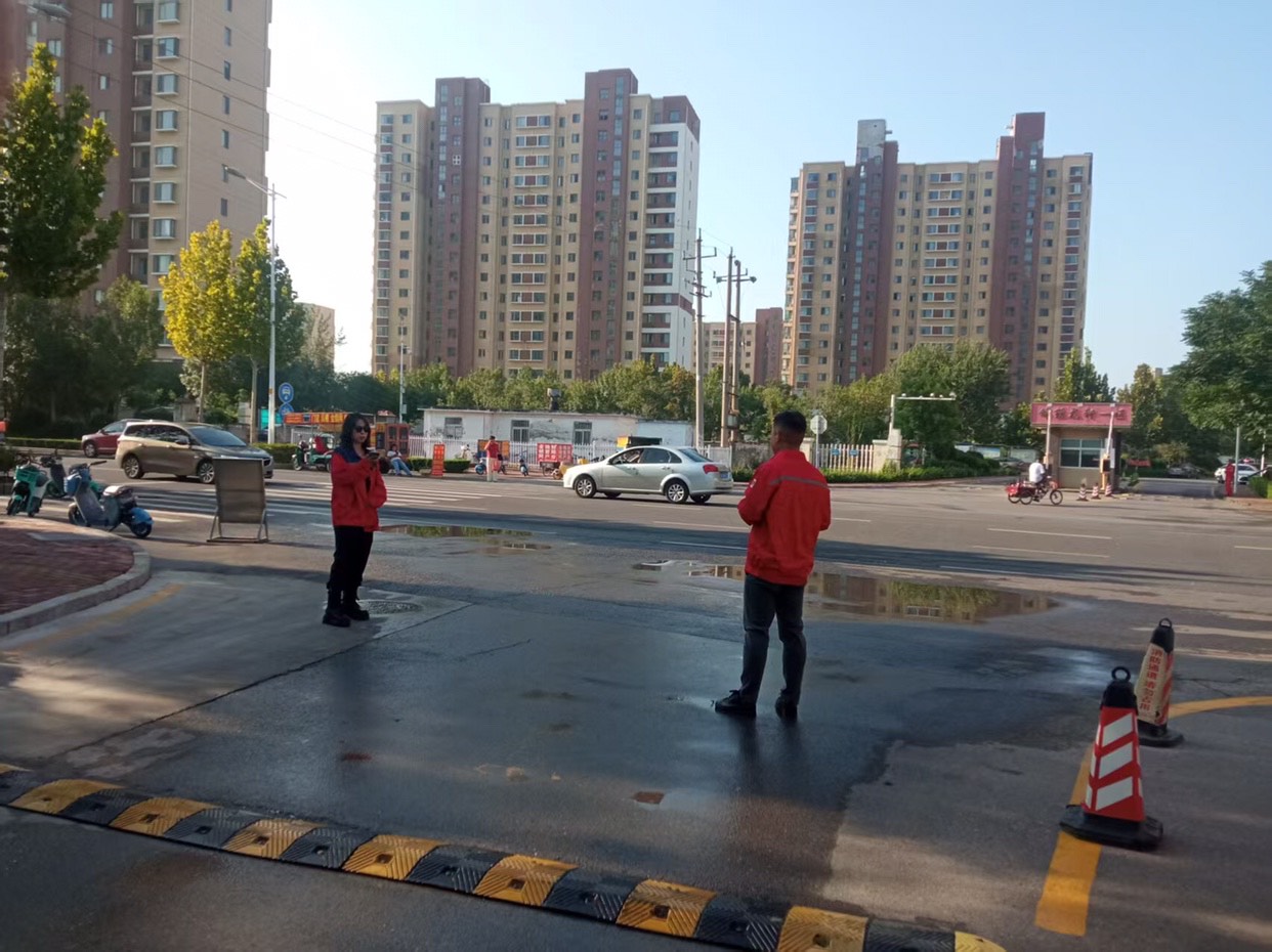 清晨七点,胜利玉山物业锦绣事业部龙轩二区的门岗处,物业工作人员已整装待发。小区内幼儿园的送学高峰即将到来,为避免送学车辆与居民私家车流冲突,物业每天清晨都会在此开展专项疏导工作。