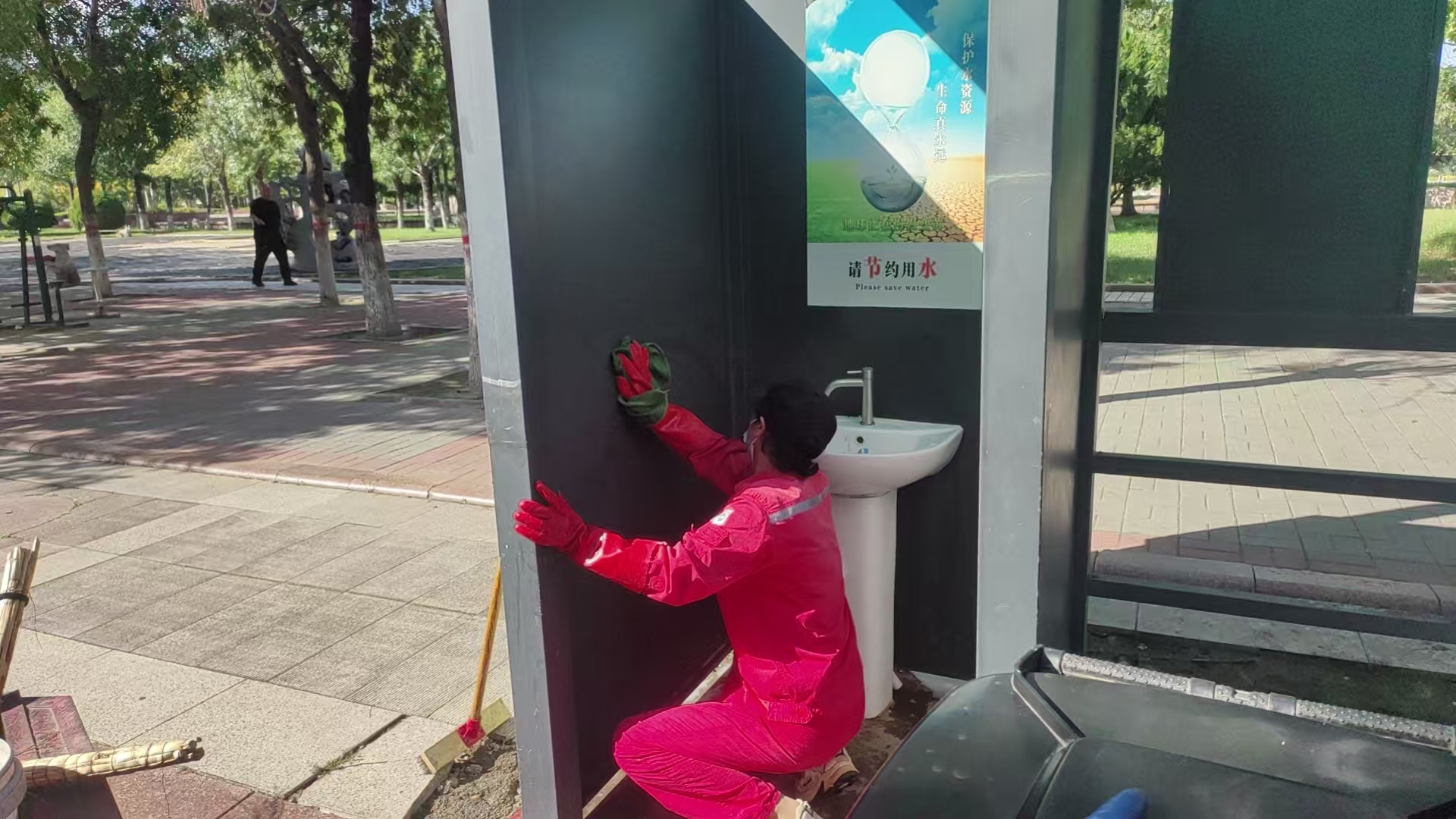 清晨时分,胜兴事业部的工作人员便已整装待发。他们从垃圾站的每一处细节着手,对垃圾桶内外、投放挡板、地面缝隙及各类卫生死角进行彻底冲刷与细致擦拭,不放过任何一处污渍残留。经过数小时的奋战,原本易积污、略显杂乱的垃圾站焕然一新,地面干净整洁,设施摆放规整。