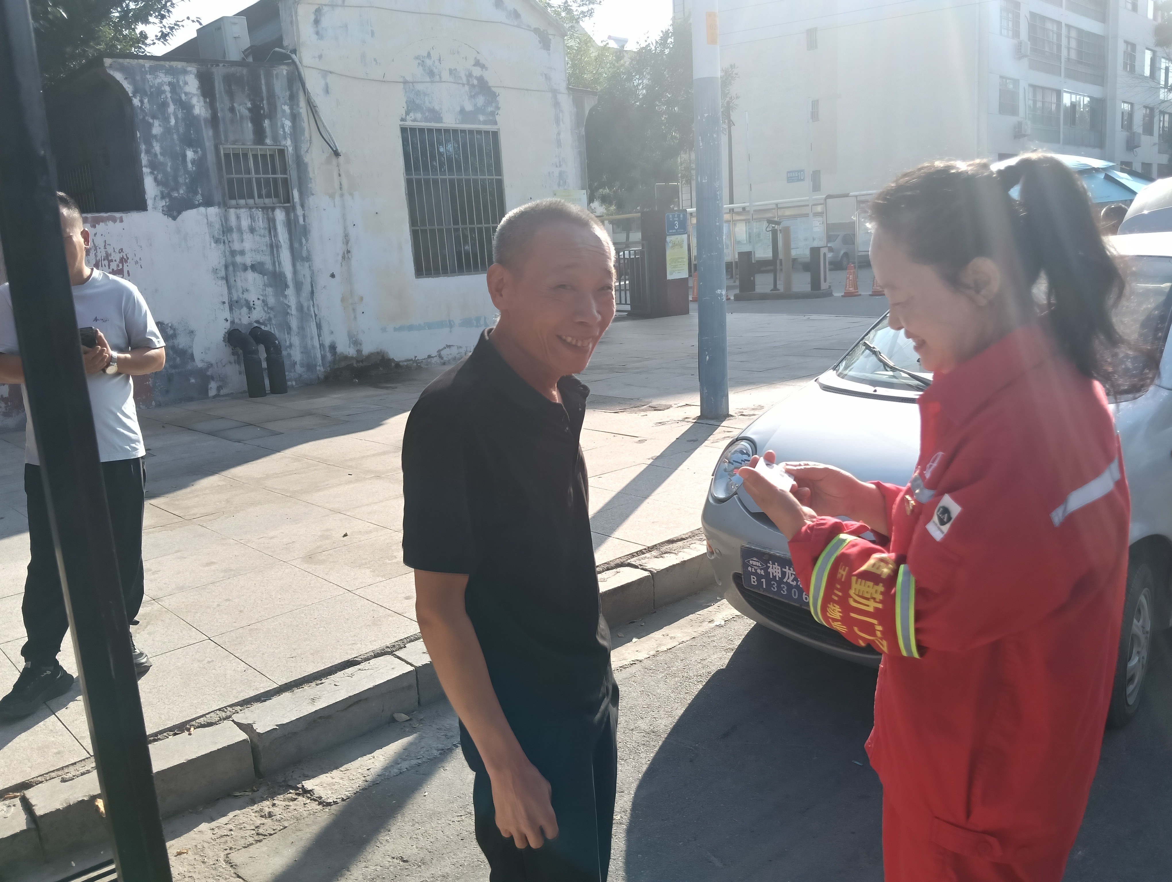 8:10左右吴艳和同事刚从周边摊主询问归来,便迎面遇到了匆匆赶来的赵兴广,经现场核对身份信息后,吴艳将身份证交还到了赵兴广手中,从捡到身份证到成功归还整个过程仅用了半个小时。“这都是我们应该做的,能帮您解决烦心事,我们也很开心。”面对赵兴广的感谢,吴艳笑着说。