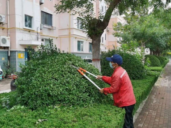 行动中,绿化职工分工明确、高效推进。此次修剪以“整齐美观、层次分明”为原则,针对小区主干道旁及楼栋前的冬青、女贞等绿篱植物,工作人员手持绿篱机、修枝剪等专业工具,严格按照预设造型精心作业从顶部平整到侧面修型,每一处都细致打磨,将原本参差不齐的绿篱修剪得轮廓清晰、线条流畅;对小区内草坪,采用精细化修剪标准,统一草坪高度并梳理杂草,让整片草坪呈现出平整翠绿的视觉效果;同时,大家还对绿化带内的枯萎枝条、落叶及杂物进行全面清理,既消除了安全隐患,也让绿化空间更显清爽通透。
