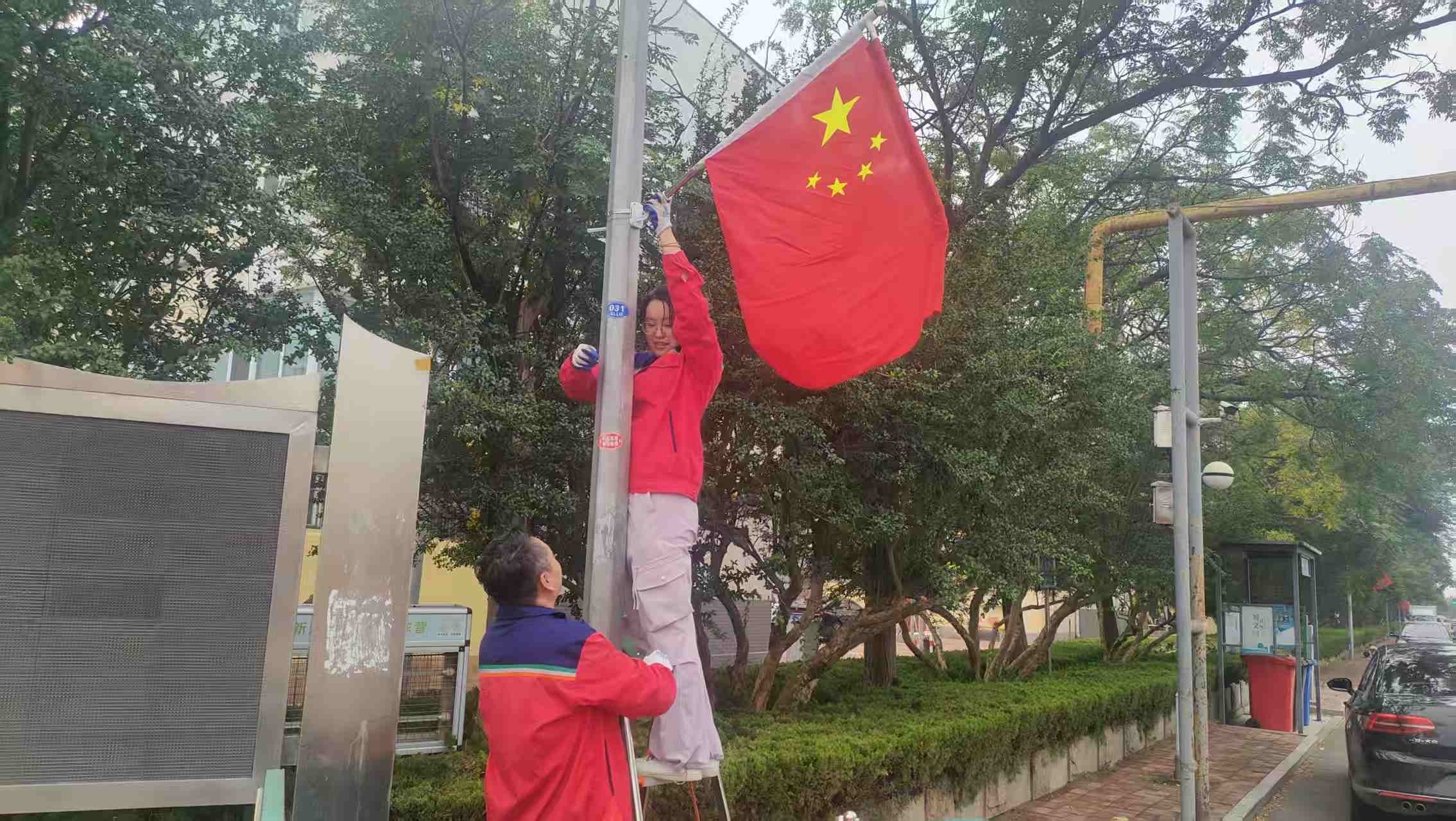 走进小区,鲜艳的国旗迎风招展。物业工作人员精心布置、细致检查,确保每一面国旗都规范整洁、庄重美观,同事感慨“看着国旗,心里就特别踏实,过节的氛围一下子就浓了”。“国旗不仅是国家的象征,更能拉近邻里间的情感距离。”物业负责人表示。