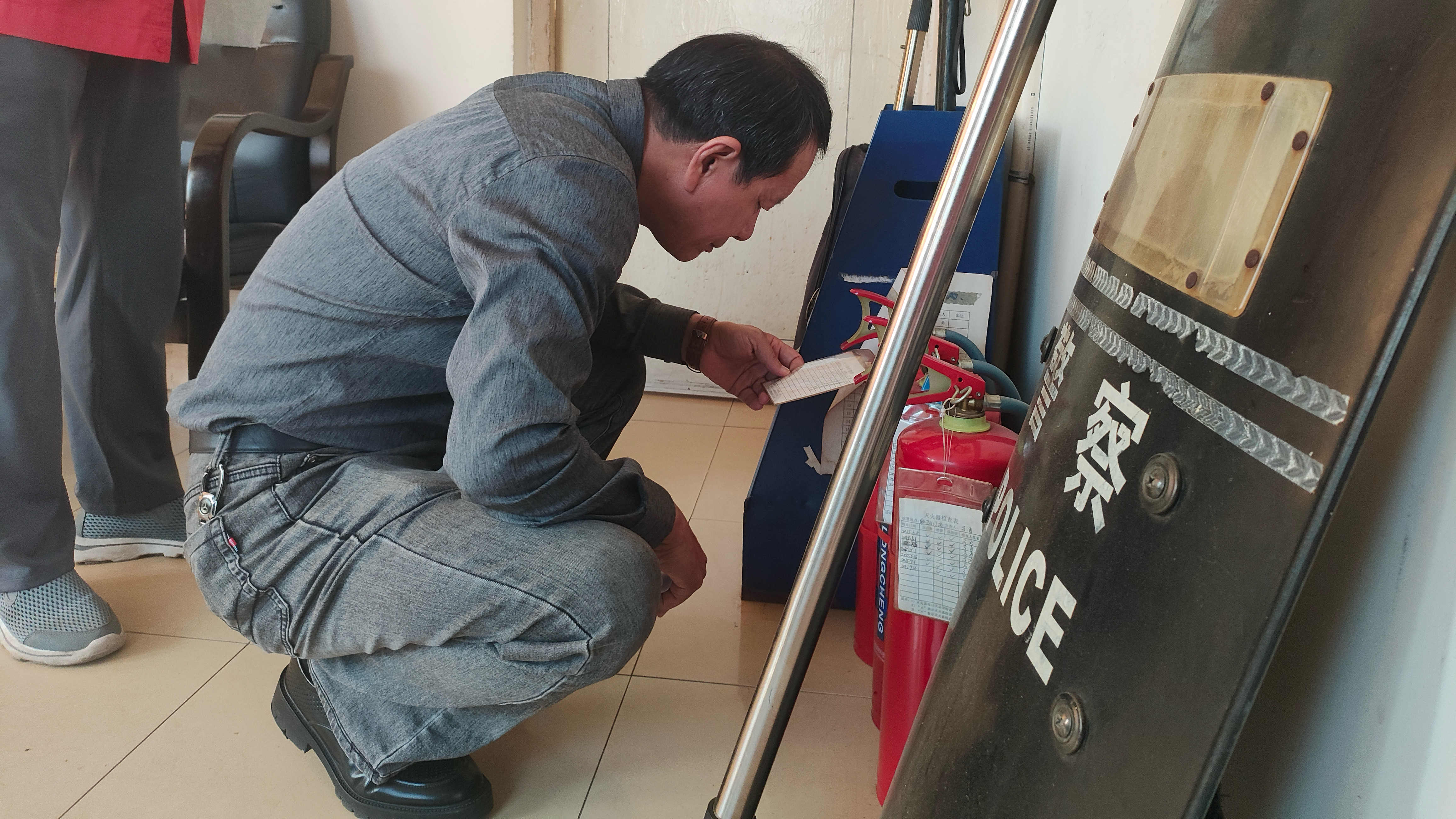 督查工作中,领导始终秉持认真负责的态度,细致核查每一项工作细节,对发现的问题逐一指出并给出专业指导。在小区门卫室,领导仔细询问安保人员的值守制度,查看来访登记记录;在消防器材存放点,更是逐一查看灭火器的有效期;路过垃圾站时,还观察了垃圾投放情况。