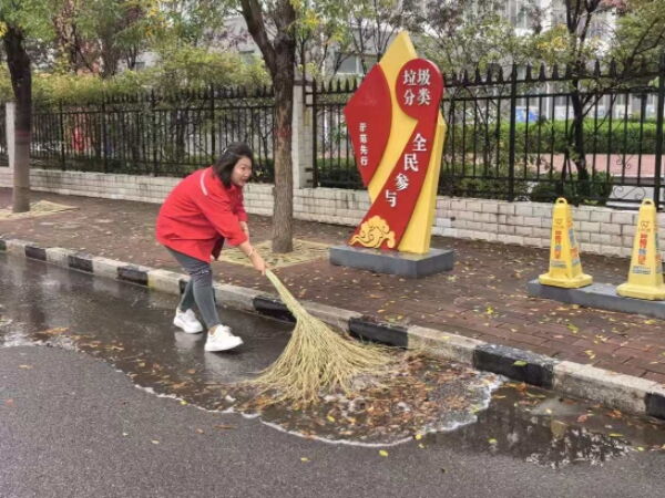 在小区主干道、单元门口等重点区域,物业职工分工协作,用大扫帚快速推扫路面积水,为居民开辟出干爽安全的通行通道。同时通过业主群及时发布雨情提示,提醒大家注意出行安全 。