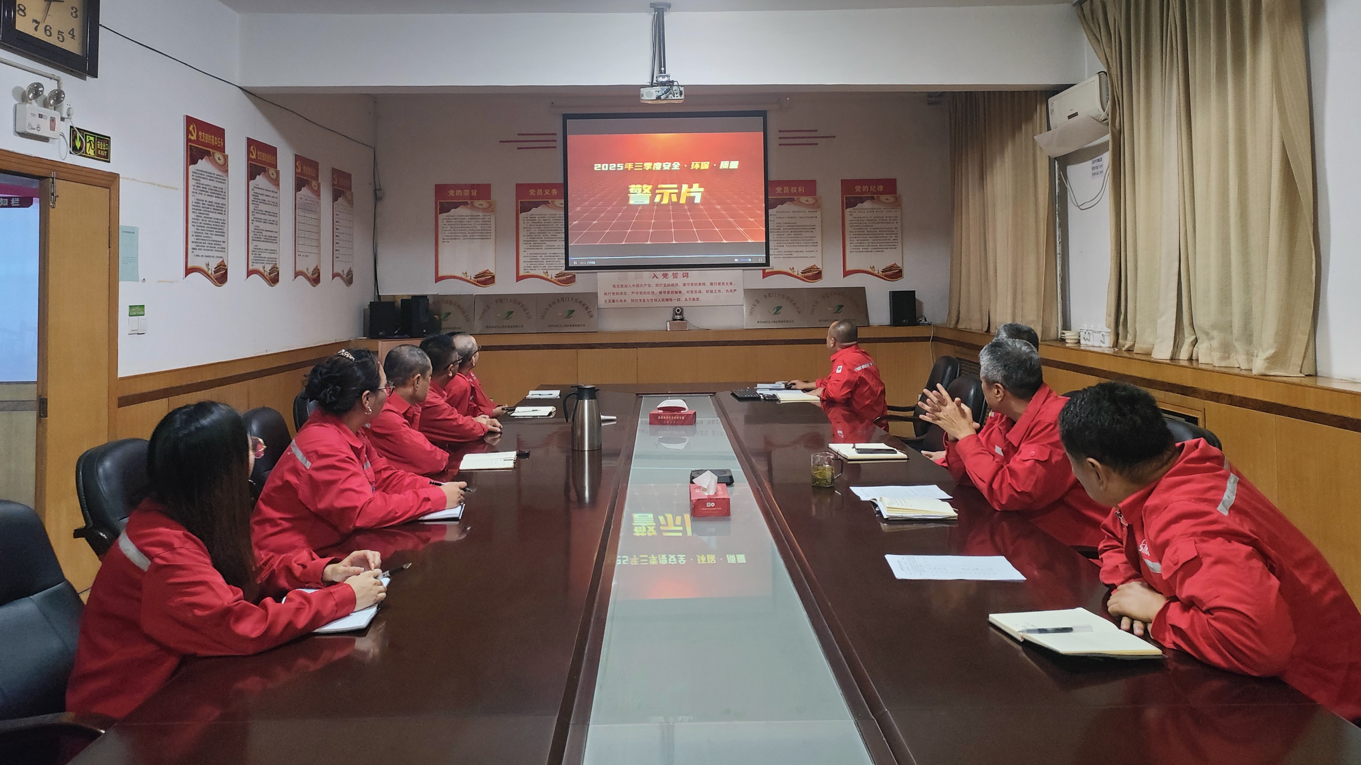 会议伊始,集中学习了《2025 年国庆节后复工复产“第一课”学习材料》和《节后全员复工复产安全教育》两份文件,系统夯实复工复产安全理论基础。随后,共同观看《2025年第3季度安全、环保、质量警示片》,随着视频的播放,画面中一幕幕因忽视安全规范、环保要求和质量标准而引发的事故场景,让在场的每一位员工都绷紧了神经。大家目不转睛地盯着屏幕,有的员工还不时拿起笔在笔记本上记录着关键信息,深刻认识到安全、环保与质量在工作中的重要性,也为节后复工复产敲响了警钟。