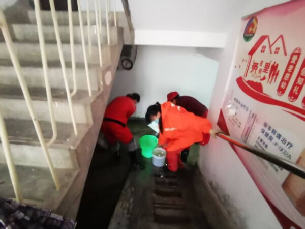 连日降雨侵袭,锦华小区部分地下室出现渗水现象,积水逐渐蔓延至楼道,不仅影响居民正常通行,还可能损坏地下设施。危急时刻,锦华事业部职工闻汛而动,一场与雨水的“较量”就此展开。