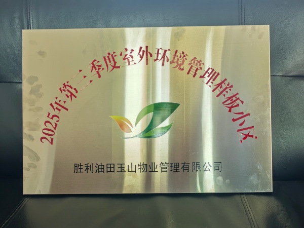 近日,胜利玉山物业幸福事业部孤东佳苑小区凭借卓越的室外环境管理品质,在严格的综合评选中脱颖而出,成功获评“2025年第三季度室外环境管理样板小区”荣誉称号。