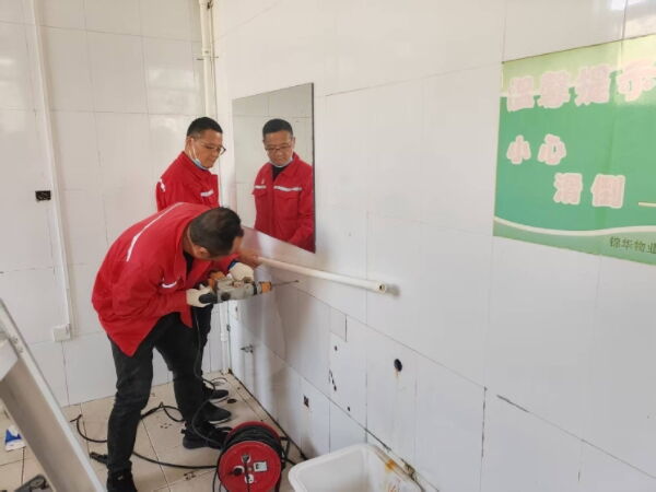 经细致排查,维修人员最终确定用水量异常的原因——公厕内部分水管线隐藏于墙体内部,因管线老化出现渗漏问题,且墙体遮挡导致渗漏情况此前未被及时发现。针对这一问题,锦华事业部部迅速制定维修方案,考虑到墙体内部管线维修难度大、后续维护不便,决定将内置渗水管线改为墙外明管线。