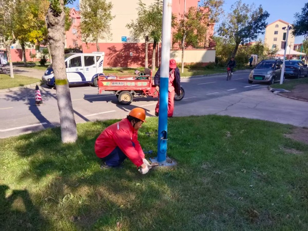 在整个抢修过程中,物业维修人员不仅高效完成了断路修复、更换受损元件,更对所有修复灯杆的基座进行了加固,以提升其后续应对恶劣天气的能力。经过紧张施工,所有故障路灯全部高效修复并亮灯,片区夜间照明迅速恢复正常。