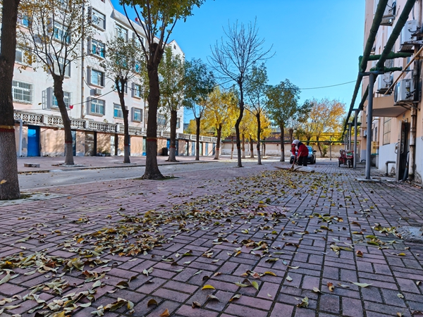 时值深秋,天气骤然转凉,萧萧黄叶纷纷落下。小区里日渐增多的落叶,给垃圾清运和小区保洁增加了很大的工作量。为了给小区业主营造干净整洁的生活环境,胜利玉山物业桐凤事业部积极行动,加强小区落叶清扫工作。