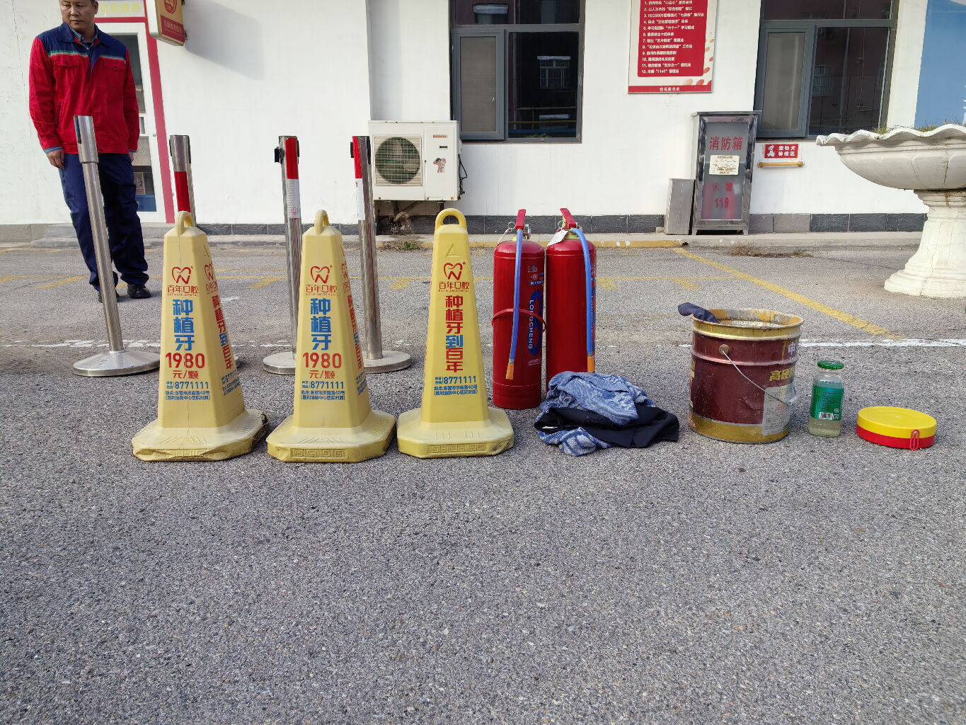 演练开始前,事业部部经理黄坤简要介绍了此次消防演练的目的和重要意义,并向参加演练的员工普及了“119消防宣传月”的相关知识,随着总指挥一声令下“玉山事业部2025年‘全民消防,生命至上’消防演练活动正式开始!”演练正式拉开序幕,首先是灭火行动组组长赵玉伟通过理论讲解与实操演示相结合的方式,向物业员工普及灭火器的使用方法,真正实现“见火不慌,抬手就灭”,其次演练进入灭火环节,此次演练以“贴近实战”为导向,模拟小区公共区域因电气线路短路引发明火,现场浓烟升腾,存在蔓延风险,“火情就是命令”,各应急小组迅速集结,分工协作,灭火行动组第一时间携带干粉灭火器赶赴起火点,有序展开初期火灾扑救;消防室值班人员迅速启动应急预案,确认报警位置并通知巡逻岗核查;疏散引导组组织周边人员快速撤离安全区域,确保无人员滞留;警戒保障组迅速拉警戒线,维持现场秩序,防止次生事故发生;设备保障组同步检查消防水泵,室外消火栓等设备运行状态,确保供水正常。
