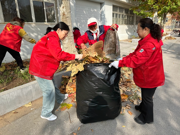 深秋时节,金黄的银杏叶和褐色的梧桐叶如蝶纷飞,为小区铺上了厚厚的地毯。这本是诗意的景致,却给居民出行带来了不便,也存在安全隐患。近日,胜利玉山物业桐凤事业部组织全员开展扫落叶志愿活动。