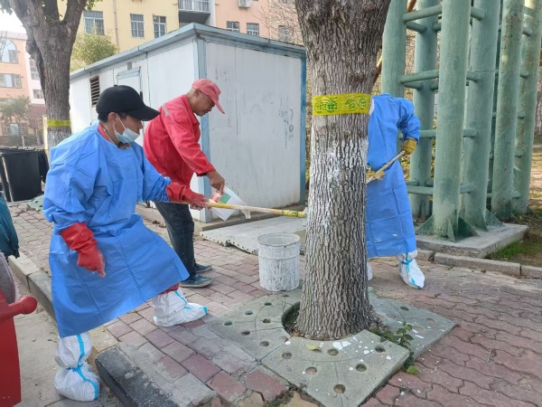 近日,胜利玉山物业幸福事业部紧抓秋冬季养护关键时期,组织工作人员为辖区内所有小区的树木实施了统一的涂白养护工作,为它们换上了整洁的“冬季新装”。