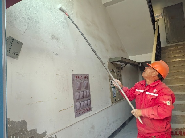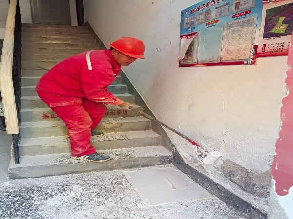 维修人员首先使用专业铲刀,仔细将已经起鼓、松动的老旧墙皮彻底清理干净。随后,采用内墙涂料对墙面进行均匀粉刷。为确保粉刷效果持久、美观,维修人员待第一遍涂料完全晾干后,再进行第二遍粉刷作业。经过修缮,原本斑驳的墙面变得平整洁白,楼道环境焕然一新。