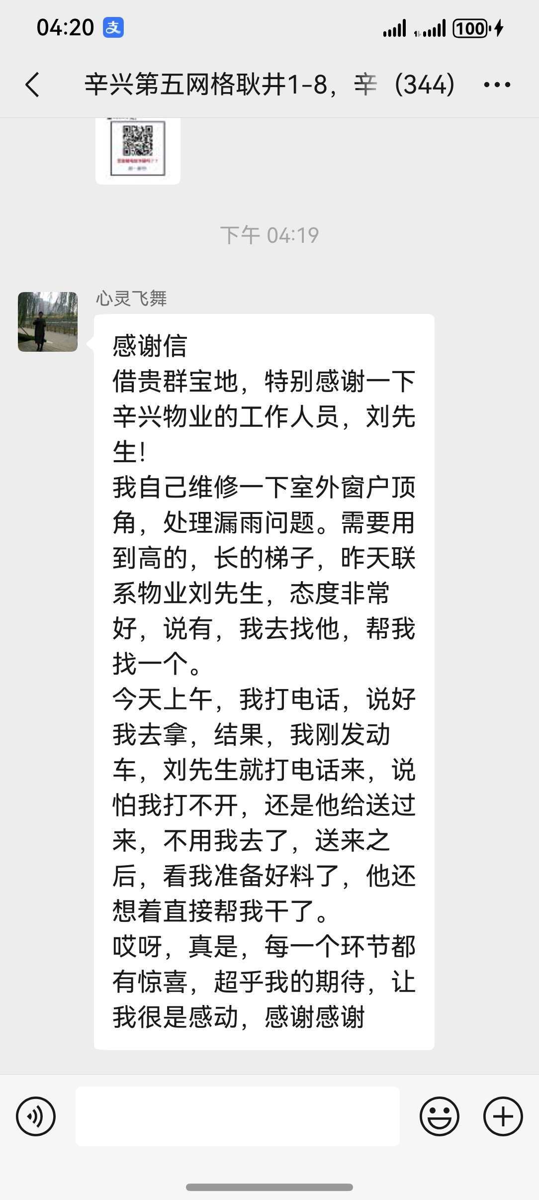 11月27日,胜利玉山物业辛兴事业部东辛业主群里一封满含诚意的感谢信,如一股暖流驱散了冬日的寒意,为这个寒冷的季节增添了格外的温情与暖意。“借贵群宝地,特别想感谢辛兴物业的刘长征先生!字里行间满是对辛兴物业维修人员刘长征的认可与感激,业主的真挚分享,很快也收获了邻里们的纷纷点赞。