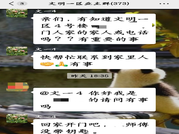 没有犹豫,孙伟立即找来一床被子,披在业主身上,先为其抵御严寒。随后,他迅速查找业主家人联系方式,同步在业主群中发布信息,并配合网格员与民警共同守候,直至业主家人赶来。事后,辖区民警向幸福事业部表达了特别感谢,对孙伟的主动协助与温暖处置给予了高度认可。业主家人也在业主群中表示了对物业的感谢。